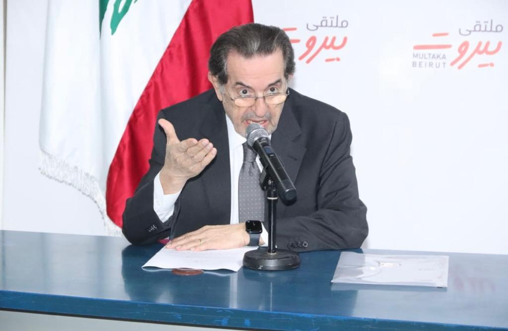 وبدأ بعد ذلك الوزير حرب في إلقاء كلمته، ومما جاء فيها: أن يصبح مصير النظام السياسي القائم موضع تساؤل وقلق في الأجواء الماساوية التي يعيشها اللبنانيون وصراعهم من أجل الحياة والبقاء، بالنظر لما تعرّضوا له من نكبات متلاحقة ومذلّة. ولا أخفي أنني بتّ مفتنعاً أنّ ما جرى في لبنان منذ عقود، ولا سيّما بعد العام 1990 هو تدمير منهجي للدولة، وانتهاك للمواثيق الوطنية، وجريمة موصوفة بحقّ الوطن تقارب بفداحتها حدّ الخيانة العظمى.